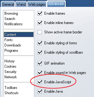 The easiest way to enable JavaScript in IE is to say "Yes" when prompted to allow "blocked content" when running this product. If you already said "No" and need to turn blocked content (JavaScript) back on: